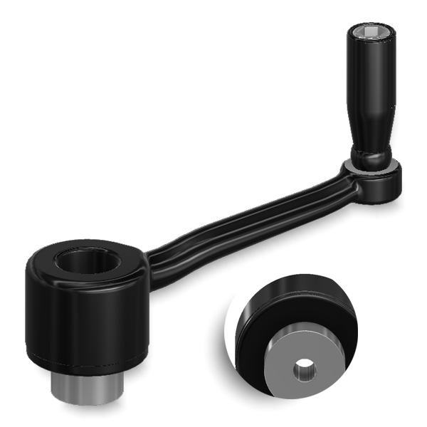La manovella a foro passante è un componente meccanico progettato per il controllo manuale di macchinari e attrezzature in vari settori industriali. Il corpo è realizzato in tecnopolimero rinforzato di colore nero, conferendo elevata resistenza a solventi, oli, grassi e altri agenti chimici, garantendo durabilità nel tempo. La parte metallica include una boccola in ottone con foro passante filettato, che consente un fissaggio stabile e sicuro. Questa manovella è indicata per resistere a temperature di esercizio fino a 150°C.