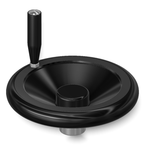 Il volantino pieno con maniglia girevole è un componente meccanico progettato per il controllo manuale di macchinari e attrezzature in vari settori industriali. Il corpo è realizzato in tecnopolimero rinforzato di colore nero, conferendo elevata resistenza a solventi, oli, grassi e altri agenti chimici, garantendo durabilità nel tempo. La parte metallica comprende una boccola in ottone con foro cieco filettato, assicurando un fissaggio stabile e sicuro. Questo volantino è indicato per resistere a temperature di esercizio fino a 150°C.